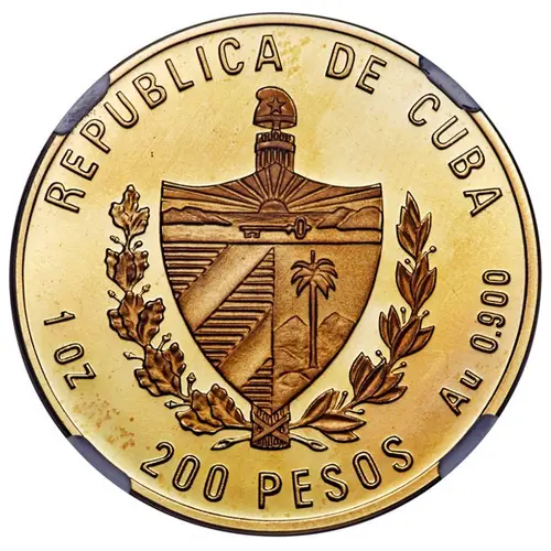 | Obverse lettering | REPUBLICA DE CUBA 1 OZ 200 PESOS AU 0.900 (Translation: Republic of Cuba 1 ounce 200 Pesos gold 0.900) |