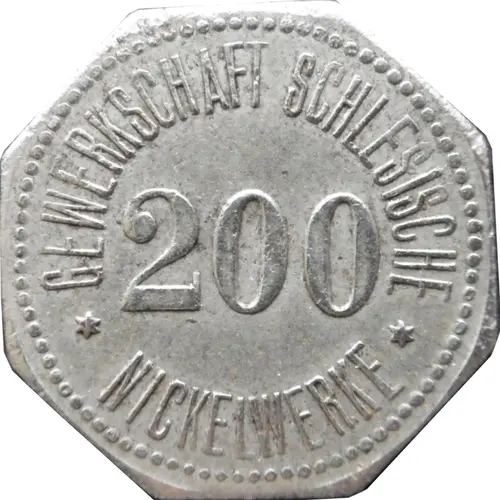 Obverse lettering GEWERKSCHAFT SCHLESISCHE NICKELWERKE 200
