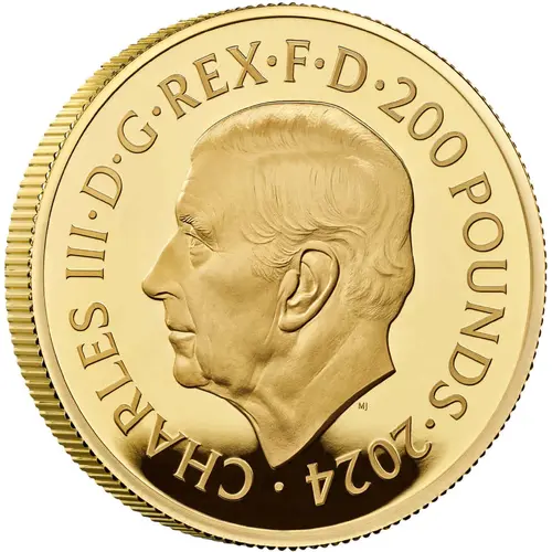 CHARLES III·D·G·REX·F·D·200 POUNDS·2024 · MJ (Translation: Charles the Third by the Grace of God King Defender of the Faith) |