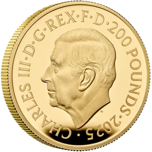 | Obverse lettering | CHARLES III·D·G·REX·F·D·200 POUNDS·2025 · MJ (Translation: Charles III by the Grace of God King Defender of the Faith) |