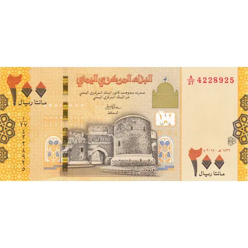 | Reverse lettering | Central Bank of Yemen Two Hundred Rials |