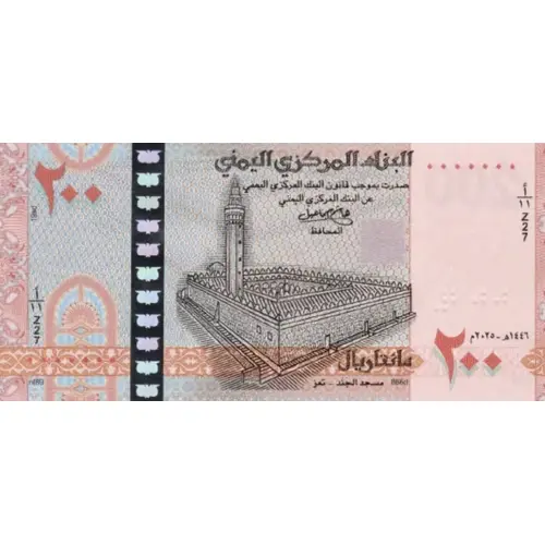 | Opis rubu | CENTRAL BANK OF YEMEN TWO HUNDRED RIALS ١٤٤٦/ |