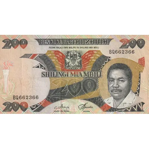 (Translation: Central Bank of Tanzania Two hundred shillings)
