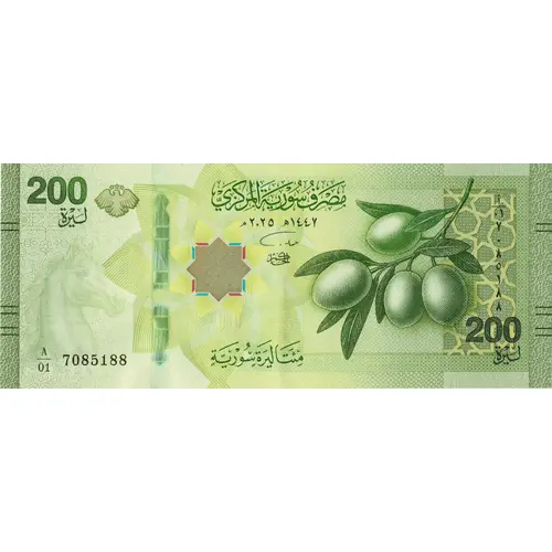 Reverse description Central Bank of Syria headquarters and Dome of the Treasury of the Umayyad Mosque.