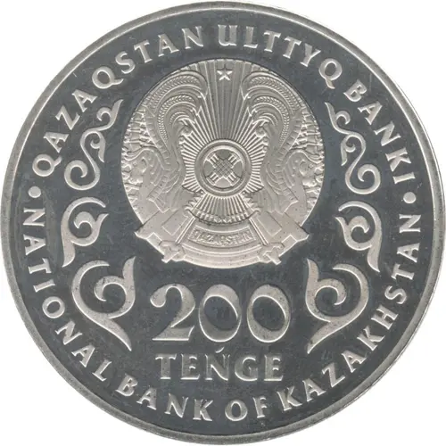 The coat of arms of the Republic of Kazakhstan is depicted in the central part, elements of the national ornament are to the left and to the right of it. Along the circumference - the inscriptions QAZAQSTAN ULTTYQ BANKI NATIONAL BANK OF KAZAKHSTAN. At the bottom is the inscription 200 TEŃGE, indicating the face value of the coin. |