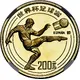 Player (right) performs a keepie uppie with logo as ball (=⚽ ESPAÑA 82) above right foot (bottom, value) 200元 (Yuan) in front of left foot in front of triple circles legend: (above, subject) 世界杯足球賽 (translation: World Cup) |