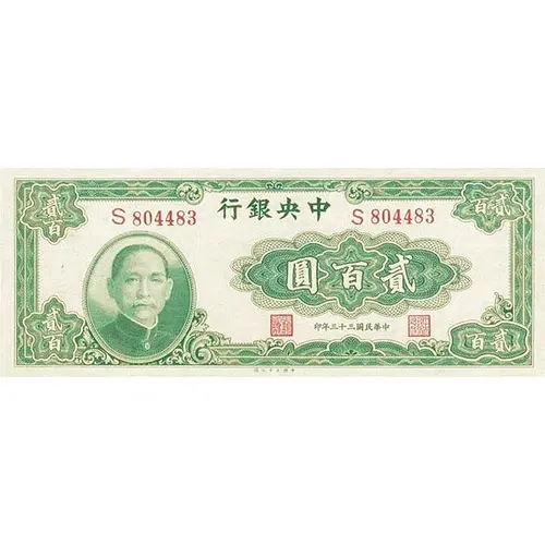 | Obverse lettering | 行銀央中 圓百貳 印年三十三國民華中 (Translation: Central Bank of China Two Hundred Yuan Printed in the 33rd year of the Republic of China) |