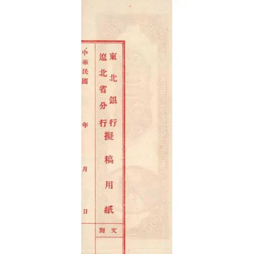 東北銀行 逛北省分行 擬稿用紙 別文 中華民國 年 月 日 (Translation: Northeastern Bank Visit the Northern Province Branch Drafting paper Other articles Republic of China, Year, Month, Day) |