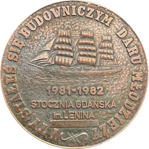 | Obverse lettering | I TY STALES SIĘ BUDOWNICZYM DARU MŁODZIEZY 1981-1982 STOCZNIA GDAŃSKA im. LENINA |