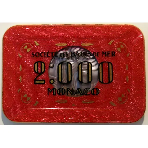 | Obverse lettering | SOCIÉTÉ DES BAINS DE MER 2.000 MONACO 1234 |