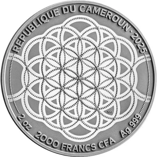 | نوشتههای روی سکه | REPUBLIQUE DU CAMEROUN · 2025 XXI 2 oz 2000 FRANCS CFA Ag999 (Translation: Republic of Cameroon) |