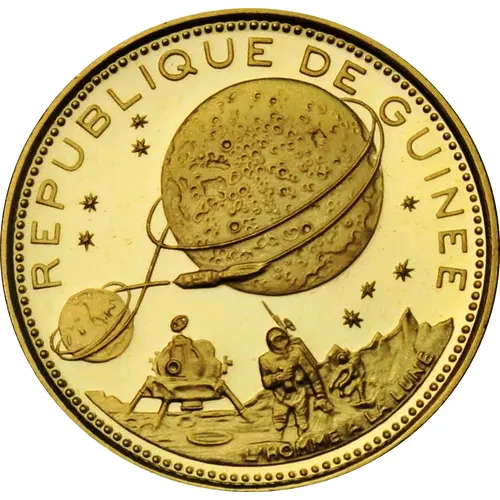 | Obverse lettering | REPUBLIQUE DE GUINEE L`HOMME A LA LUNE (Translation: Republic of Guinea Man on the Moon) |