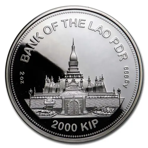 | Obverse lettering | BANK OF THE LAO PDR 2 oz Ag 999 2000 KIP |
