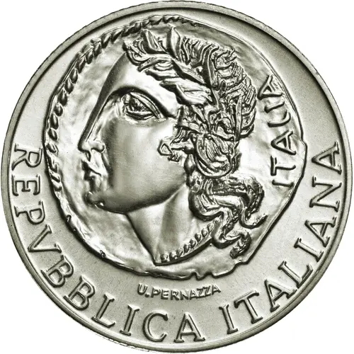 | Obverse lettering | ITALIA U. PERNAZZA REPVBBLICA ITALIANA (Translation: Italy Italian Republic) |