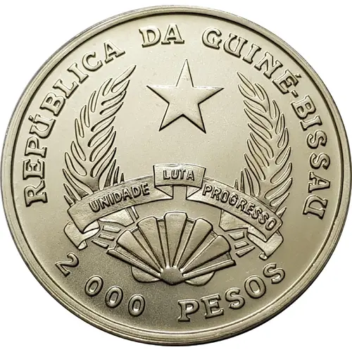 Obverse lettering REPÚBLICA DA GUINÉ-BISSAU UNIDADE LUTA PROGRESSO 2 000 PESOS
