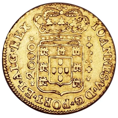 | Obverse lettering | IOANNES. V. D. G. PORT. ET. ALG. REX. 2000 (Translation: João V, by the Grace of God, King of Portugal and Algarves.) |