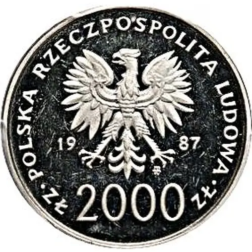 | Obverse lettering | · POLSKA RZECZPOSPOLITA LUDOWA · 19 87 mw ZŁ 2000 ZŁ |