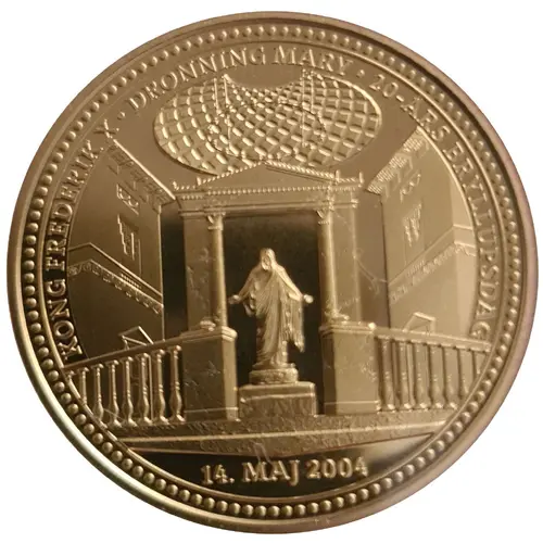 | Obverse lettering | Kong Frederik X Dronning Mary 20-ÅRS BRYLLUPSDAG |