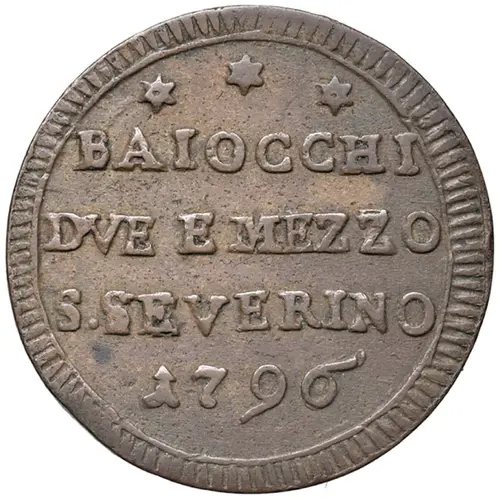 | Obverse lettering | BAIOCCHI DVE E MEZZO S·SEVERINO 1796 |
