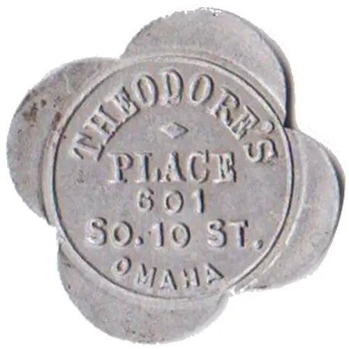 | Obverse lettering | THEODORE`S PLACE 601 SO. 10 ST. OMAHA |
