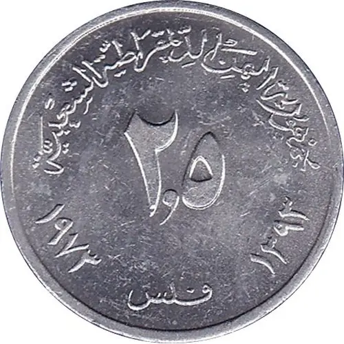 | Obverse lettering | جمهورية اليمن الدمقراطية الشعبية ٢,٥ فلس ١٩٧٣ ١٣٩٣ (Translation: People`s Democratic Republic of Yemen 2.5 Fils 1973 1393) |