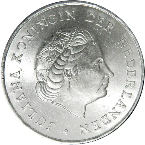 Obverse description Portrait of Queen Juliana facing right.
