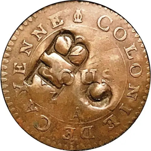 | Obverse description | Countermark over French Guiana 2 Sous piece. |