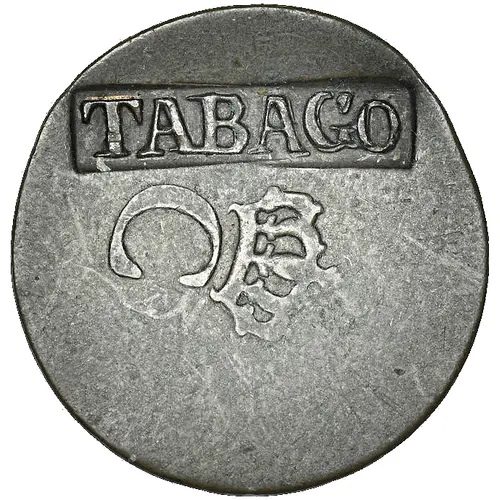 | Opis awersu | Countermark over French Colonies 1 Stampee / 2 Sols piece, which displays a crowned C monogram. |