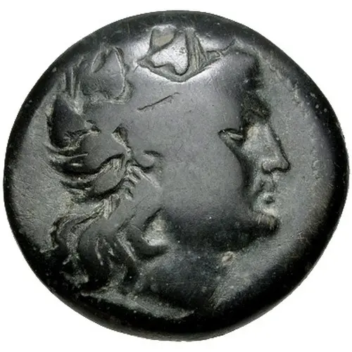 | Reverse description | ΠO/ΛY (magistrate) in two lines within ivy wreath with thyrsos to right |