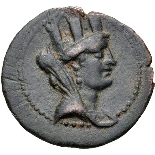 | Descripción del anverso | Turreted head of Tyche facing right |