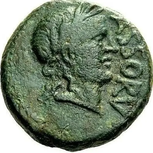 | Popis líce | Laureate head of Apollo, right. |