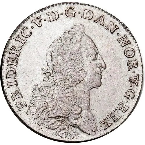| Descrição do anverso | Bare bust of King Frederik V with long and curly hair, facing right |