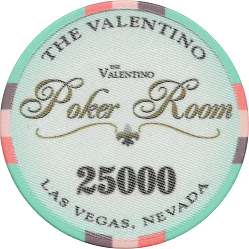 | Obverse lettering | THE VALENTINO Poker Room 25000 LAS VEGAS, NEVADA |