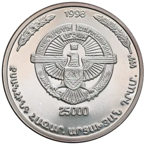 1998 ԼԵՌՆԱՅԻՆ ՂԱՐԱԲԱՂԻ ՀԱՆՐԱՊԵՏՈՒԹՅՈՒՆ ԱՐՑԱԽ 25000 (Translation: Nagorno-Karabakh Republic Artsakh) |