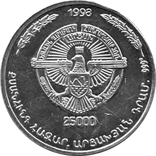 | Obverse lettering | 1998 ԼԵՌՆԱՅԻՆ ՂԱՐԱԲԱՂԻ ՀԱՆՐԱՊԵՏՈՒԹՅՈՒՆ ԱՐՑԱԽ 25000 (Translation: Nagorno-Karabakh Republic Artsakh) |