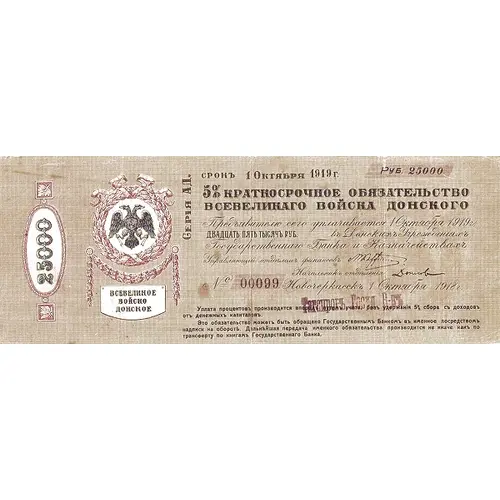 | Reverse description | Arms at left, handstamp with place of acceptance |