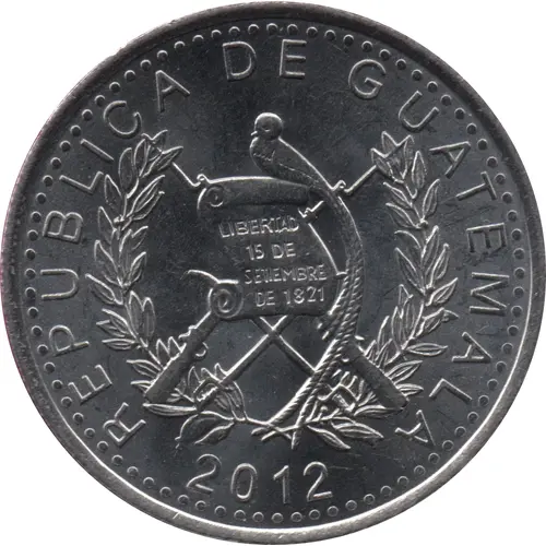 | Opschrift voorzijde | REPUBLICA DE GUATEMALA LIBERTAD 15 DE SETIEMBRE DE 1821 2012 (Translation: Republic of Guatemala Liberty 15th of September 1821) |