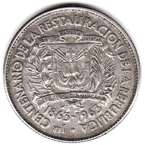 | Obverse lettering | CENTENARIO DE LA RESTAURACION DE LA REPUBLICA DIOS PATRIA LIBERTAD REPUBLICA DOMINICANA 1863-1963 (Translation: Centenary of the Restoration of the Republic God Fatherland Liberty Dominican Republic) |
