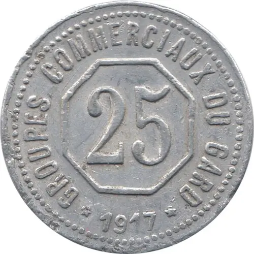 | Obverse lettering | GROUPES COMMERCIAUX DU GARD 25 * 1917 * |
