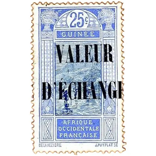 Vorderseitenlegende 25 C GUINEE VALEUR D`ECHANGE AFRIQUE OCCIDENTALE FRANÇAISE DE LA NEZIERE J. PUYPLAT SC.
