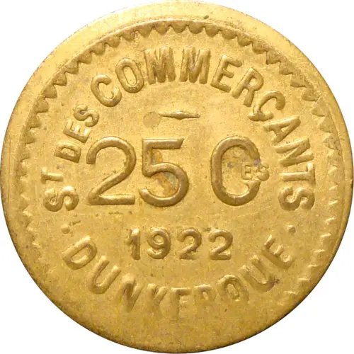| نوشتههای روی سکه | ST DES COMMERCANTS 25 CES 1922 · DUNKERQUE · |