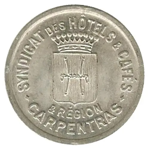 | Obverse lettering | SYNDICATS DES HÔTELS & CAFÉS & RÉGIONS - CARPENTRAS - |