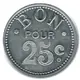 | Reverse lettering | BON POUR 25 C. |