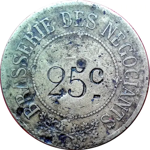 | Obverse lettering | BRASSERIE DES NEGOCIANTS 25c |