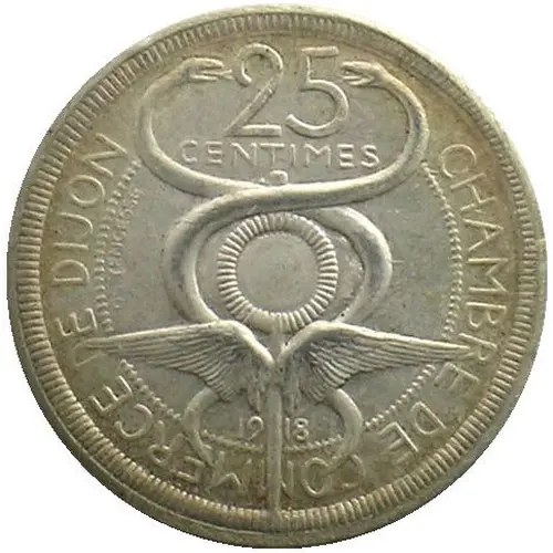 | Obverse lettering | CHAMBRE DE COMMERCE DE DIJON 25 CENTIMES O. YENCESSE 19 18 |