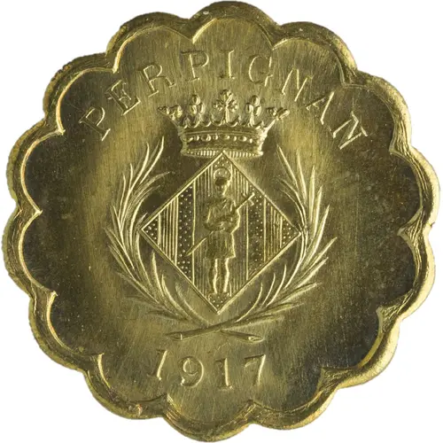 | Obverse description | Coat of arms of the city of Perpignan, under the name of the city and above the date. |