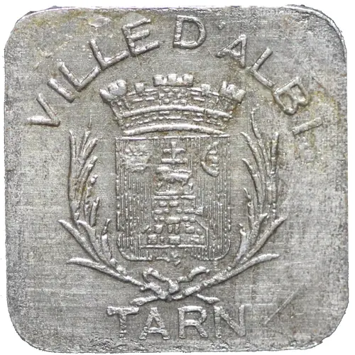 | Obverse description | Coat of arms of the city of Albi, framed by the legend in two lines. |
