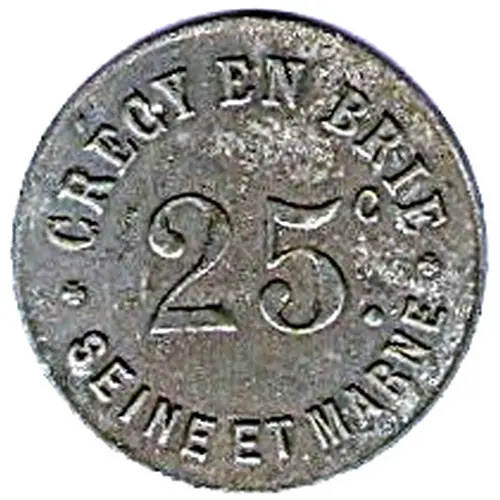 | Obverse lettering | CRÉCY EN BRIE 25c. + SEINE ET MARNE + |