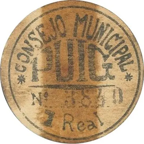 | Obverse lettering | CONSEJO MUNICIPAL PUIG 1 Real (Translation: Municipal Council Puig 1 Real) |