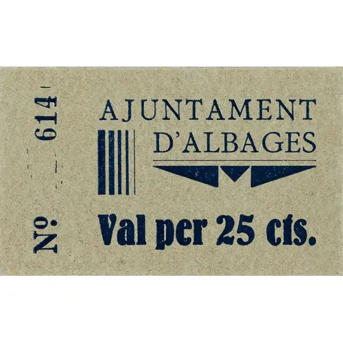 AJUNTAMENT D`ALBAGES Val per 25 cts. (Translation: City Council of Albages Voucher for 25 Centimos) |